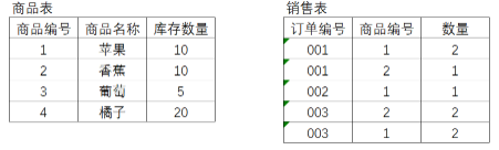 图中是某水果店某日的销售表和商品表,请根据图表内容回答以下问题:
